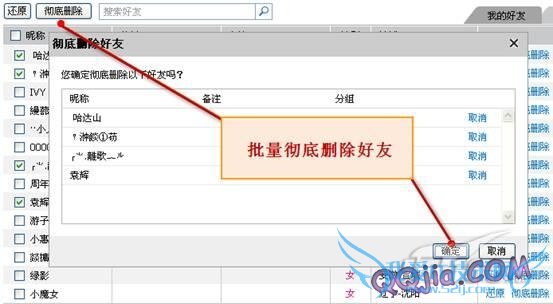 如图07所示,我们还可以对好友进行批量彻底删除。不过笔者劝大家使用该功能的时候一定要谨慎哦,因为这是“彻底删除”,不可还原哦。