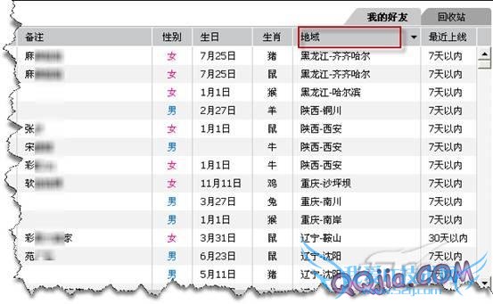 而图03中,是按照不同“地域”对好友进行的排序。比如你想在北京搞个聚会,那么就可以使用这种排序方式,专门选出北京的好友,然后对他们发出聚会邀请。