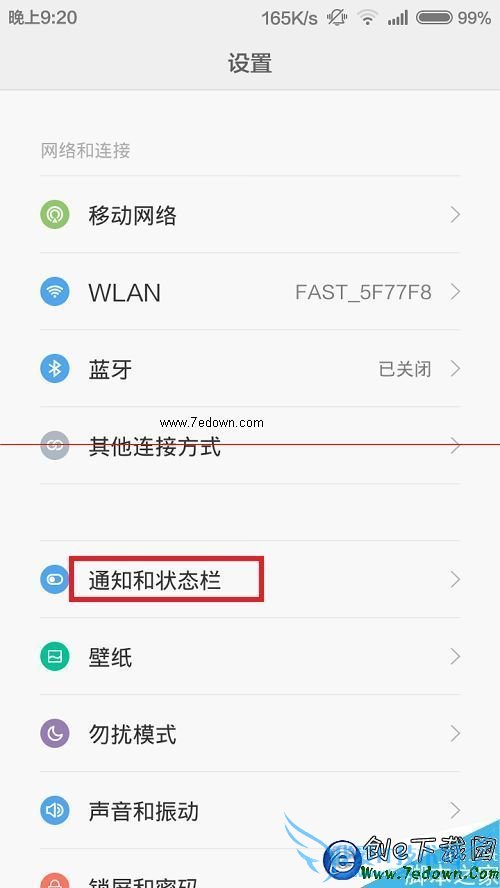 1、手机系统设置:进入设置菜单,选择“通知和状态栏”。