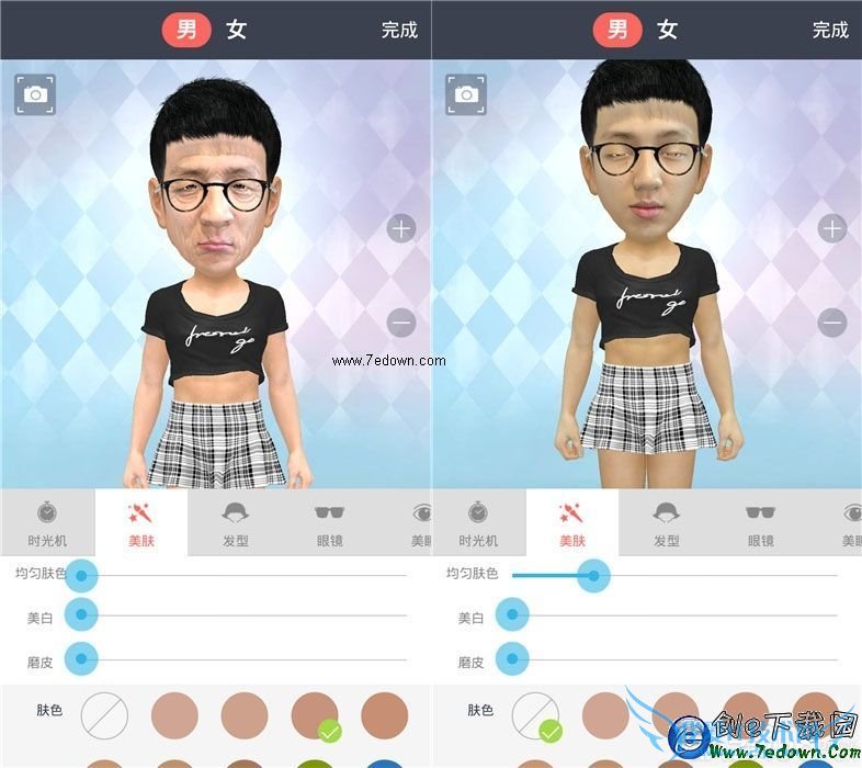 8、发型能够随意设置,多大上百种发型自己挑选,细节处还有摆动效果,同时还可设置镜框样式,镜框样式种类也非常多,各种嘻哈搞怪应有尽有,小偶对于眼镜的建模也非常细腻,能被头发覆盖,不会出现锯齿。