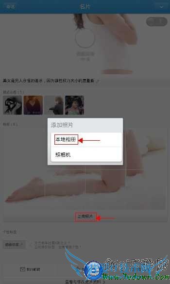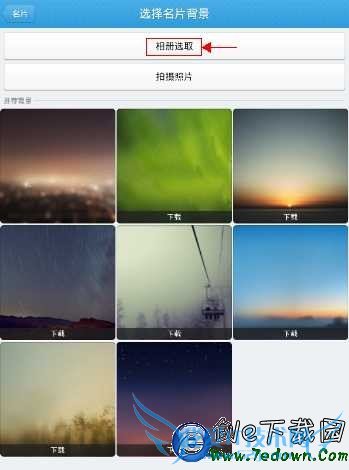 第三步:qq会弹出一个界面问你从哪里选择名片背景。点击“相册选取”。