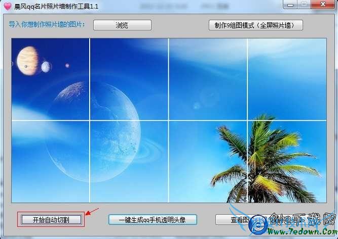 第三步:浏览选中了你喜欢的图片后,点“开始自动切割”按钮,软件会自动把8个图片分割好,然后打开你的手机qq,把这些图片传到你的手机相册上。