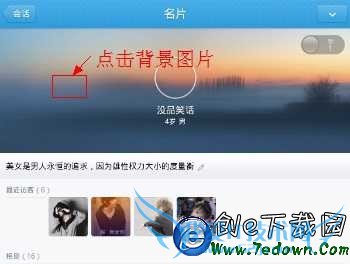 第二步:在你qq名片上半部分,也就是qq自带的背景图片那里点一下。【如果你只想制作qq相册8组图的模式,可跳过下面的操作,直接跳到第六步。】