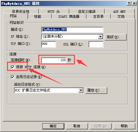 在“网站”选项卡的“连接”部分,清除“保持 HTTP 连接”复选框。
