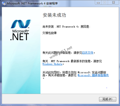Windows 2008 R2安装.NET Framework 4时提示原因是:灾难性故障