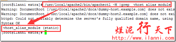 apache要配置虚拟主机,就需要先查看apache是否编译vhost_alias_module模块。当然apache默认是已经编译该模块的,我们可以通过以下命令查看是否已经编译模块,如下: