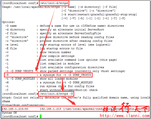 httpd-vhosts.conf修改完毕后,我们需要检查该虚拟主机配置是否正确,使用-S命令。如下: