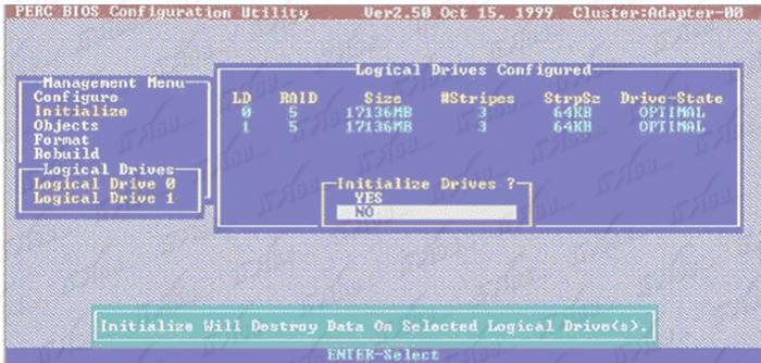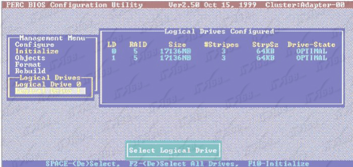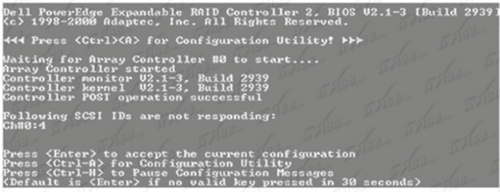 Dell PowerEdge Expandable RAID Controller 3/Di, BIOS V2.7-x [Build xxxx](c) 1998-2002 Adaptec, Inc. All Rights Reserved. <<< Press CTRL+A for Configuration Utility! >>>