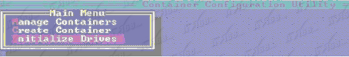 第8步,刚创建的逻辑磁盘需要经过初始化才能使用。按ESC 键返回到如(图13)所示的主菜单,选中“Initialize”选项,并按回车键,进入如(图19)所示初始化逻辑磁盘界面。