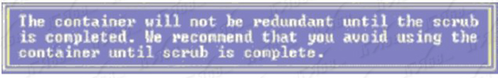 第7步,这是系统会出现如(图9)所示提示,提示告诉用户当所创建的容器没有被成功完成“Scrub(清除)”之前,这个容器是没有冗余功能的。