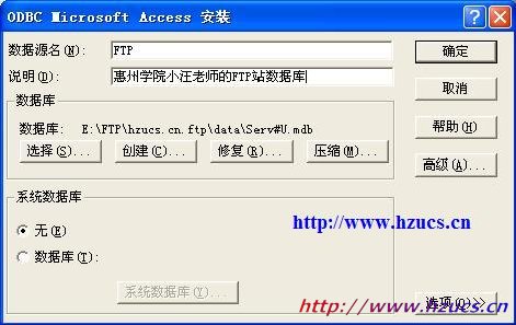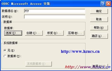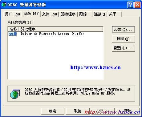 2.建立系统数据源:ftp,通过ODBC进行数据库连接,连接到Serv#U.mdb.步骤如图
