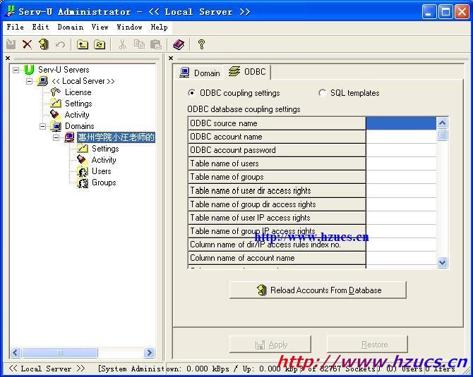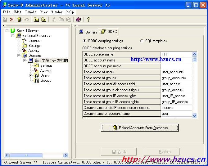 5.打开Serv-U的FTP域,点击Reload Accounts From Database,如图