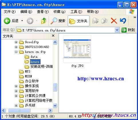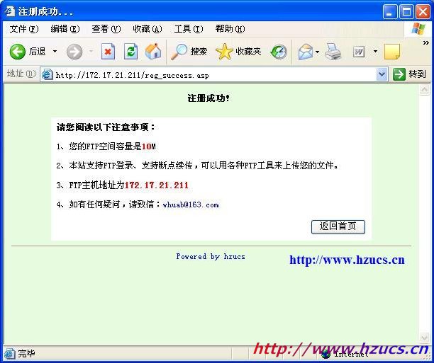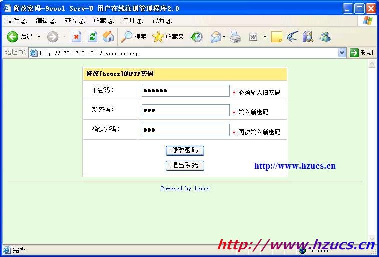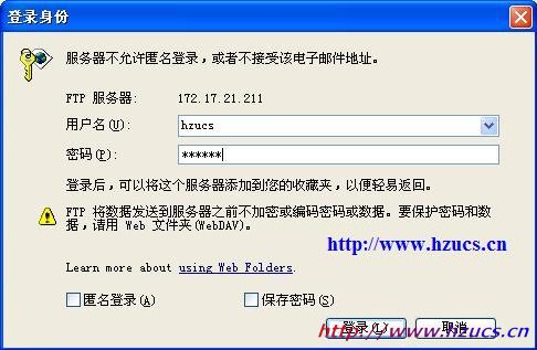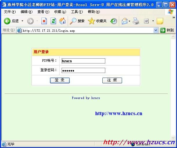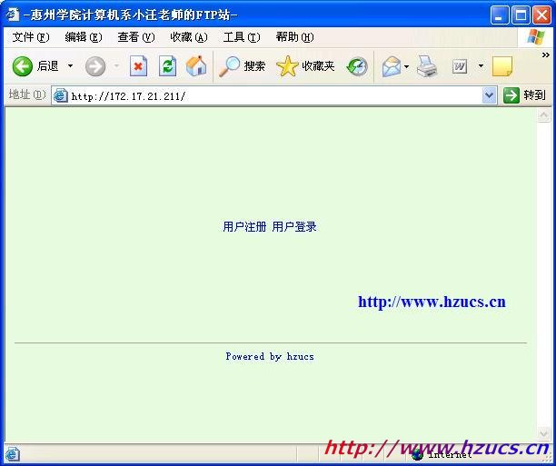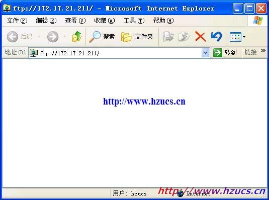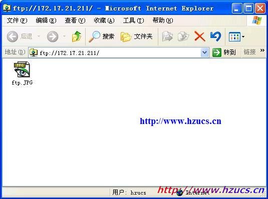 12.这时通过IE,用hzucs用户登录FTP服务器进行测试。