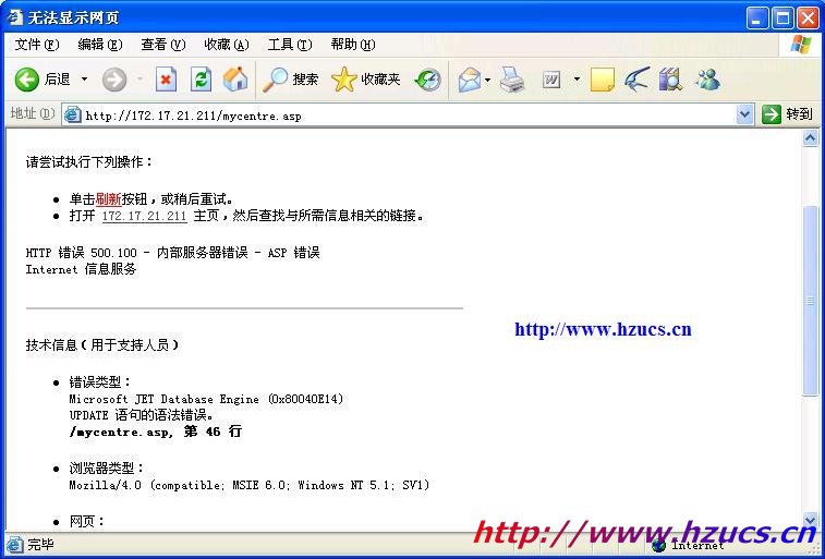 14.用IE登录WEB修改hzucs的密码,出现Microsoft JET Database Engine (0x80040E14),UPDATE语句的语法错误。