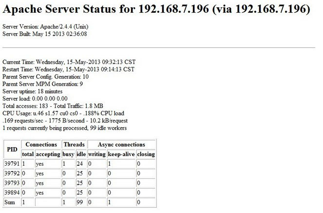 Apache的日志如果靠分析日志或者查看服务器进程来监视Apache运行状态的话,比较繁冗。不过在Apache 1.3.2及以后的版本中就自带一个查看Apache状态的功能模块server-status,这样查看apache的一些相应状态信息会很方便。