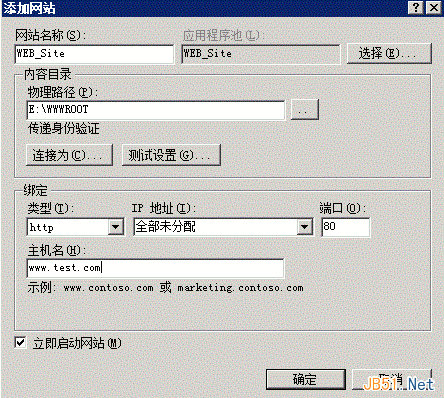 3、 测试网站。您可以在新建的网站路径下存放测试页面来访问。进一步的详细配置请参看IIS帮助手册。