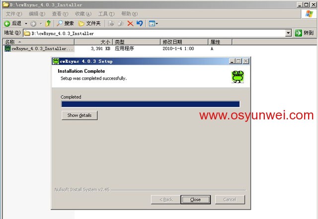 解压cwRsync_4.0.3_Installer.zip 双击打开cwRsync_4.0.3_Installer.exe