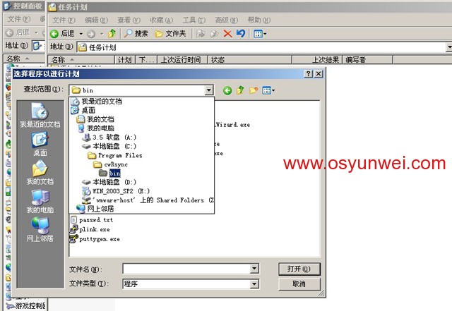 浏览,选择打开C:\Program Files\cwRsync\bin目录里面的MySQL_Backup.bat
