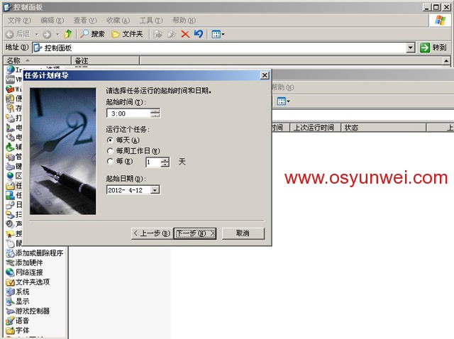 三、在cwRsync客户端的任务计划中添加批处理脚本文件,每天凌晨3:00钟自动同步Rsync服务端/home/mysql_data目录中的数据到D:\mysql_data目录
