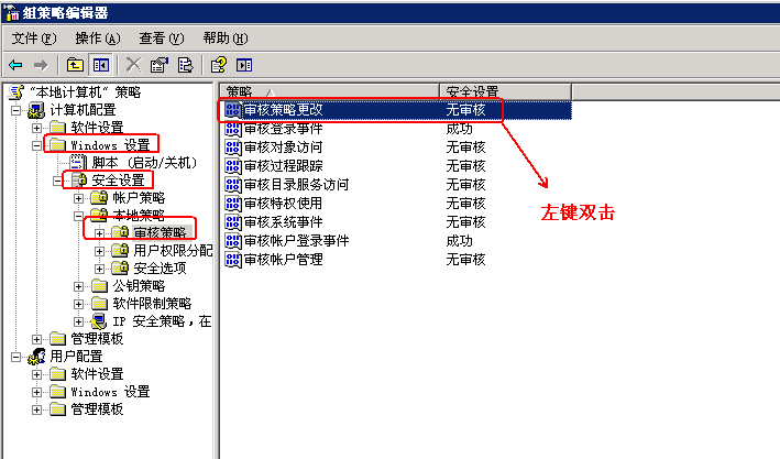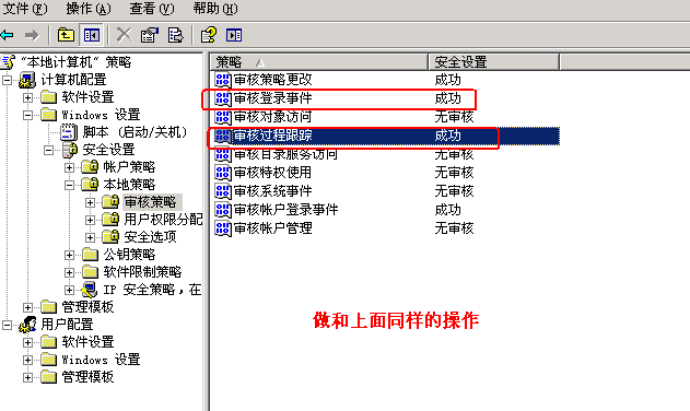 如果黑客制作了一个修改注册表型隐藏账户,在此基础上删除了管理员对注册表的操作权限。那么管理员是无法通过注册表删除隐藏账户的,甚至无法知道黑客建立的隐藏账户名称。不过世事没有绝对,我们可以借助“组策略”的帮助,让黑客无法通过隐藏账户登陆。点击“开始”→“运行”,输入“gpedit.msc”运行“组策略”,依次展开“计算机配置”→“Windows 设置”→“安全设置”→“本地策略”→“审核策略”,双击右边的“审核策略更改”,在弹出的设置窗口中勾选“成功”,然后点“确定”。对“审核登陆事件”和“审核过程追踪”进行相同的设置。