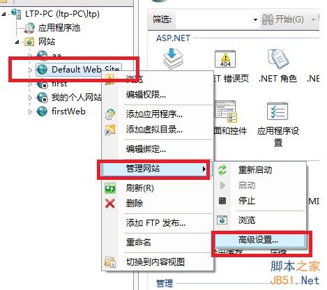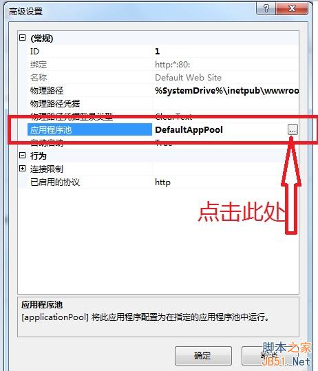 控制面板--系统和安全--管理工具--Internet信息服务(IIS)管理器,打开IIS管理器。选中左侧的默认网站(也就是“Default Web Site“这个网站),单击右侧的高级设置,将应用程序池设置为Classic.NETAppPool。