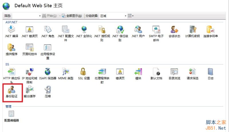 4、控制面板 --> 管理工具 -->Internet 信息服务(IIS)管理器 程序中找到 打开 Internet 信息服务(IIS)管理器 后,在中间部分的下部,可以看到 身份验证 配置项,双击就是如下界面: