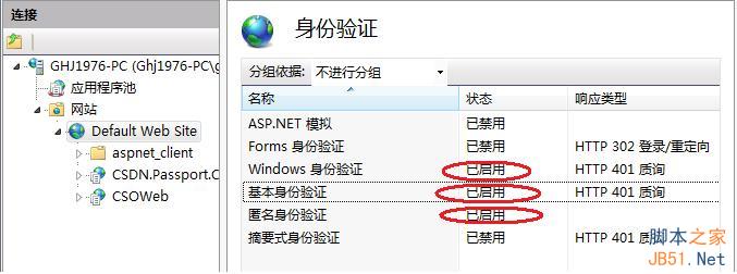 安装IIS时增加的几个身份验证,需要在要调试的站点上启用。注意:是要调试的站点,而不是要调试的应用程序目录!