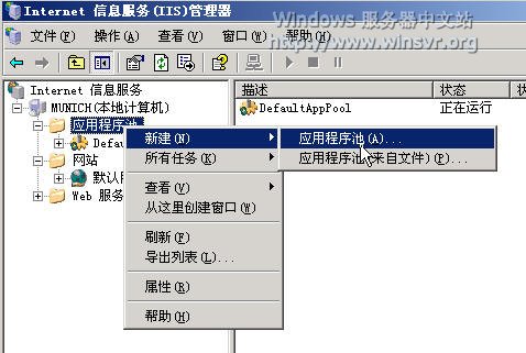 要新建应用程序池,在IIS管理控制台中右击应用程序池文件夹,指向新建,选择应用程序池;