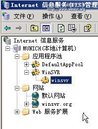 在IIS管理控制台中展开网站文件夹,右击对应的网站,然后选择属性,在弹出的网站属性对话框上,点击主目录标签,然后在应用程序池栏选择不同的应用程序池即可,默认情况下所有网站所使用的应用程序均名为默认应用程序,如果要想此网站使用不同的应用程序名,则在应用程序名栏修改即可,例如在此我就修改为winsvr,这主要是便于查看,然后点击确定即可,