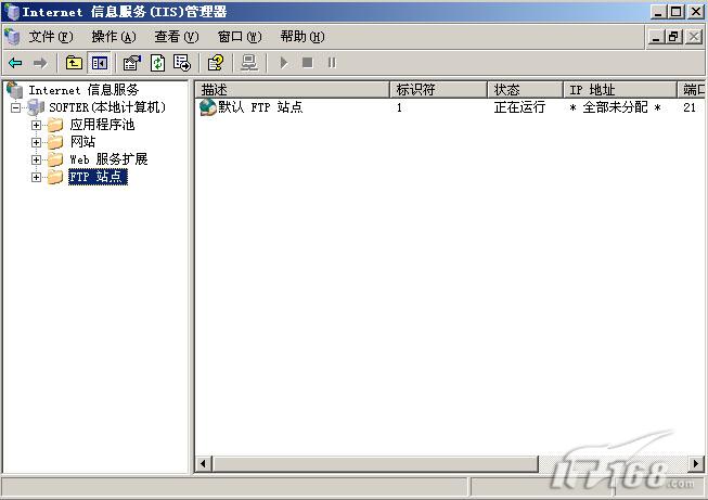 第一步:通过任务栏的“开始->所有程序->管理工具”,再其下找到Internet信息服务(IIS)管理器,打开管理器后会发现在最下方有一个“FTP站点”的选项,我们就是通过它来建立FTP服务器。(如下图)