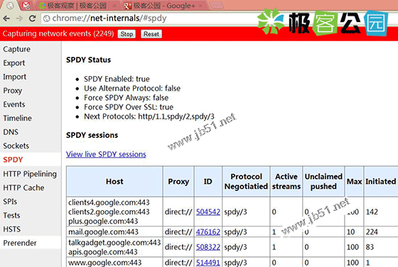 如果你在使用 Chrome 浏览器,同时使用像 Gmail 等 Google 的网络服务的话,其实你已经不再是通过 HTTP 访问这些服务了。在浏览器打开 chrome://net-internals/#spdy 就会发现你已经在使用 SPDY 协议了。(除了包括 Google 自家的 Gmail、Google Plus 等 Google 系服务外,其他公共站点例如 Twitter 和 Webtide 也已经支持该协议。在国内,基于 WebKit 的豌豆荚 2.0 也曾表示将引进Chrome的SPDY技术来进一步提升速度。