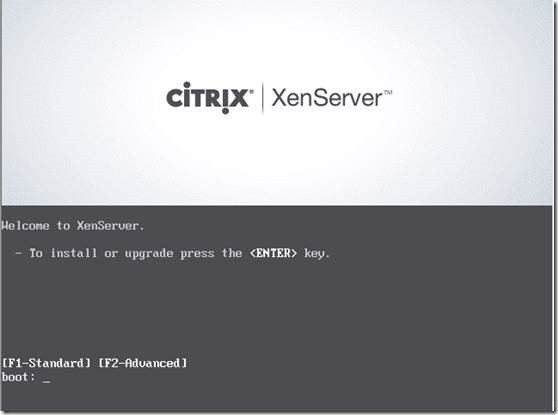 1、可以从网上下载XenServer安装文件,将其刻录成CD。将主安装 CD 插入主计算机的 DVD 驱动器中。选择从 DVD 驱动器引导。重启计算机,此时会显示初始引导消息和 Welcome to XenServer(欢迎使用 XenServer)界面,在这个界面下,有两个选项:按F1键表示进行标准安装;按F2键表示进行高级设置。