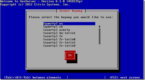 3、选择键盘后会显示 Welcome to XenServer Setup(欢迎使用 XenServer 安装程序)界面,如图13-5所示,告知用户在安装Xenserver时会重新格式化本地硬盘,所有原来的数据都会丢失,并且要求用户确认是否有重要数据。确定后选择 OK(确定)。在整个安装过程中,可以通过按 F12 键快速前进到下一个屏幕。要获得常规的帮助信息,请按 F1 键。