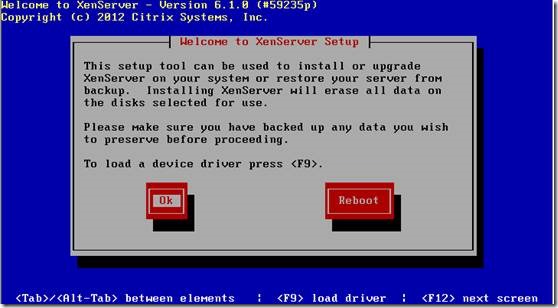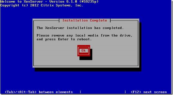 15、选择安装后,XenServer会进行安装,安装过程中需要重新启动服务器。
