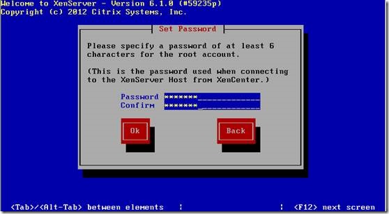 9、设置并确认 root 用户密码,XenCenter 应用程序将使用此密码连接 XenServer 主机。