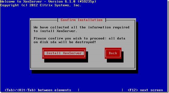 14、设置完成后选择 Install XenServer(安装 XenServer)。