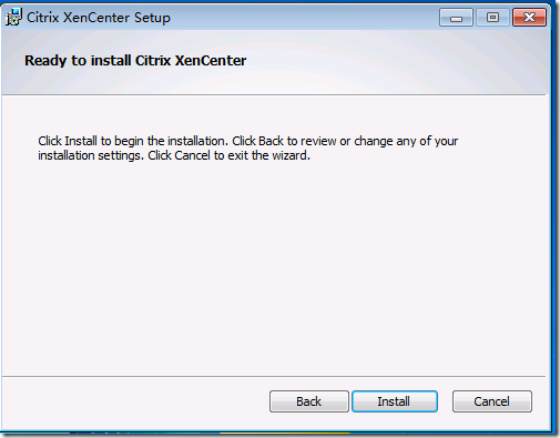 5、在已准备好安装Cirtix XenCenter页面中,单击安装,开始安装Citrix XenCenter。
