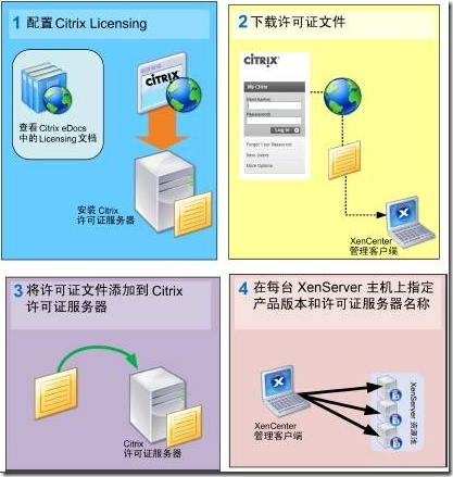 Citrix 高级版、企业版和铂金版 XenServer 要求使用的每台 XenServer 主机都有一个许可证。许可证不再存储在主机服务器上,而是必须在单独的一台许可证服务器上添加和管理许可证文件。现在,XenServer 使用的许可方式与其他 Citrix 产品相同,这意味着可以跨产品共享许可证服务器。它也可以为XenServer、XenApp、XenDesktop等Citrix产品许可。创建许可证服务器是针对已经购买了Citrix XenServer的企业和个人,使用许可证服务器来激活XenServer服务器。