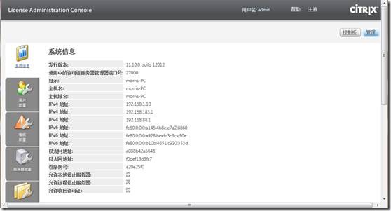 6、可以查看与许可证服务器和运行许可证服务器的系统有关的系统信息。单击位于许可证管理控制台右上角的管理选项,然后单击系统信息选项卡,可查看信息。