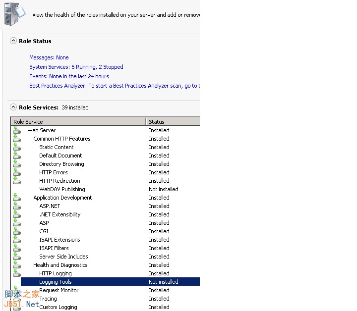 IIS Logging Tools未加载,查看一下果然: