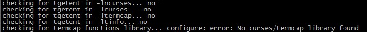 checking for termcap functions library... configure: error: No curses/termcap library found