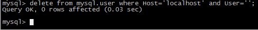 mysql> DELETE FROM mysql.user WHERE Host='localhost' AND User='';