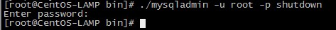 # /usr/local/mysql/bin/mysqladmin -u root -p shutdown