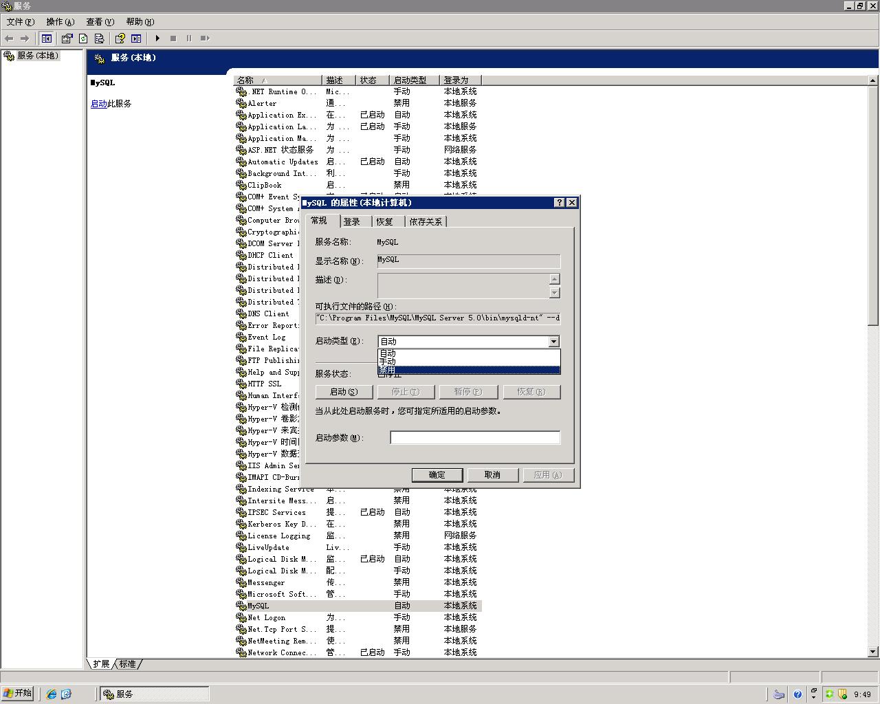 操作说明一.主机默认装有的数据库有SQL Server 2005和MySQL,服务默认都是启用的,启用中对CPU的使用和内存的使用都很大,如果主机中不需要数据库或者不需要某一个数据库可以对其服务进行停止,方法如下:1.停止SQL Server