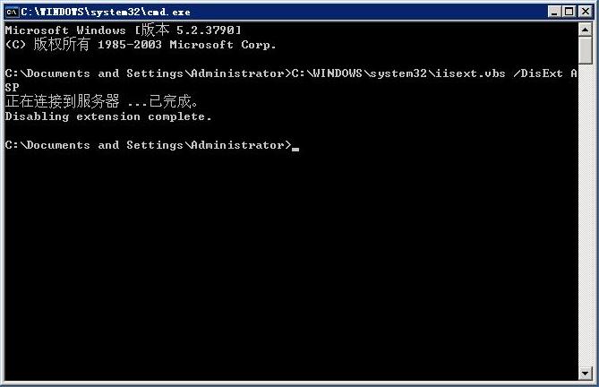 右键选择要禁止的web服务,点击“禁止”,即对此web服务禁止对一些web服务的停止操作还可以用命令行,打开“开始”菜单→“运行”在运行窗口的输入框里输入“cmd”,确定,在光标出输入“C:\WINDOWS\system32\iisext.vbs /DisExt 要停止的web服务”,并回车,例如停止ASP服务,如下图(图15)