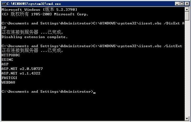 显示本地计算机上的所有 Web 服务扩展命令是“C:\WINDOWS\system32\iisext.vbs /ListExt”如下图(图16)