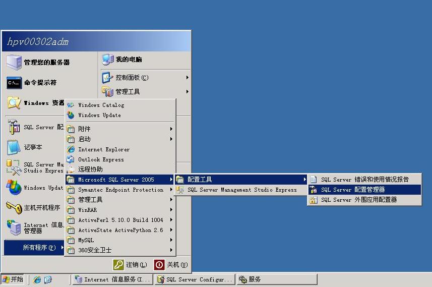方法一:打开“开始”菜单→“所有程序→Microsoft SQL server 2005→配置工具→SQL Server配置管理器”选项,如下图(图1)