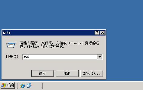 在运行窗口的输入框里输入“cmd”,并确定 如下图(图4)