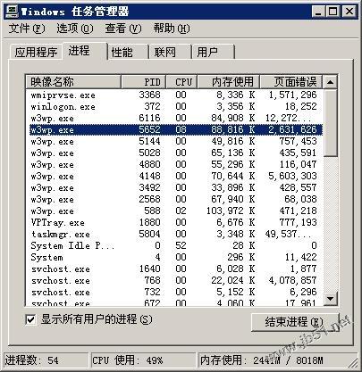 IIS6 w3wp.exe进程占用cpu和内存过多的解决方法