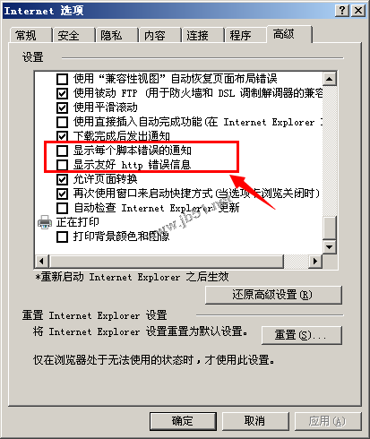 客户端浏览器设置:取消“显示友好的HTTP错误信息”